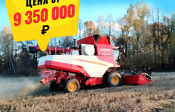 ЦЕНА от 9 350 000 ₽ (в комплектации с жатками: для кукурузы 6 рядов и для пшеницы 5,34 м с тележкой)